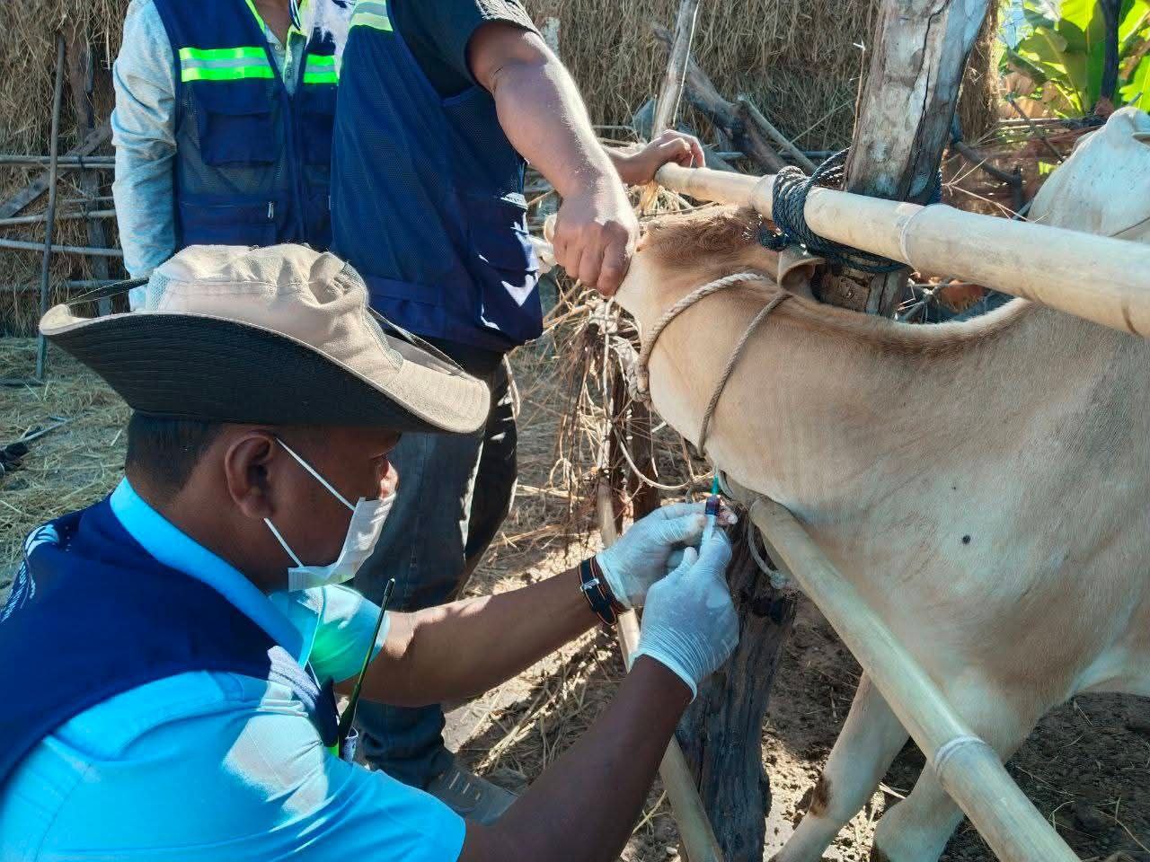 អាជ្ញាធរខេត្តកំពង់ឆ្នាំង ចុះយកសំណាក និងបូមឈាមសត្វចិញ្ចឹមដើម្បីសិក្សាពីមេរោគដែលបង្កជាជម្ងឺឆ្លងទៅសត្វ និងមនុស្ស